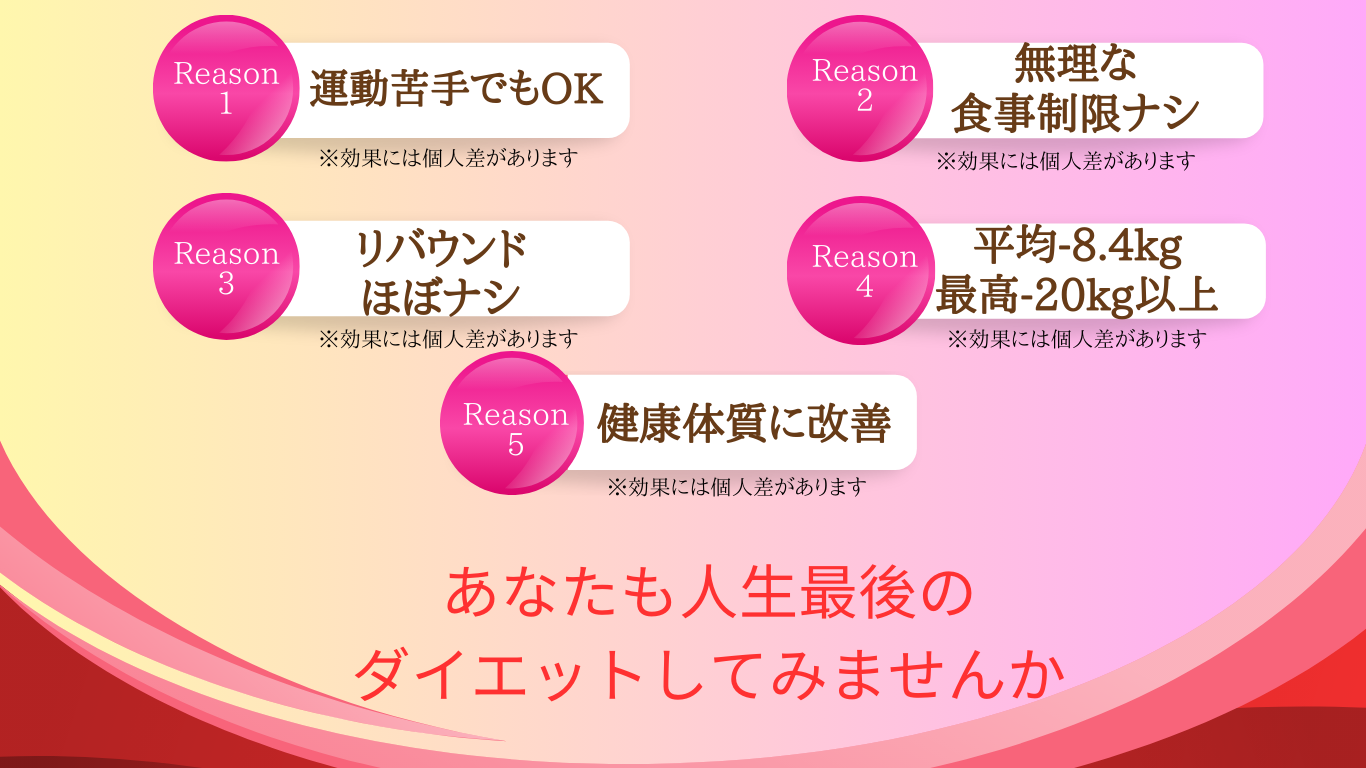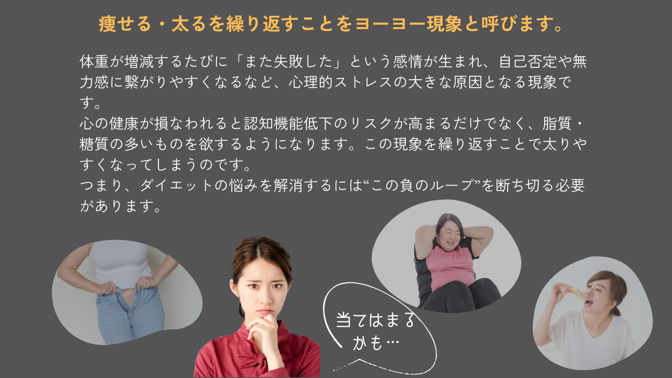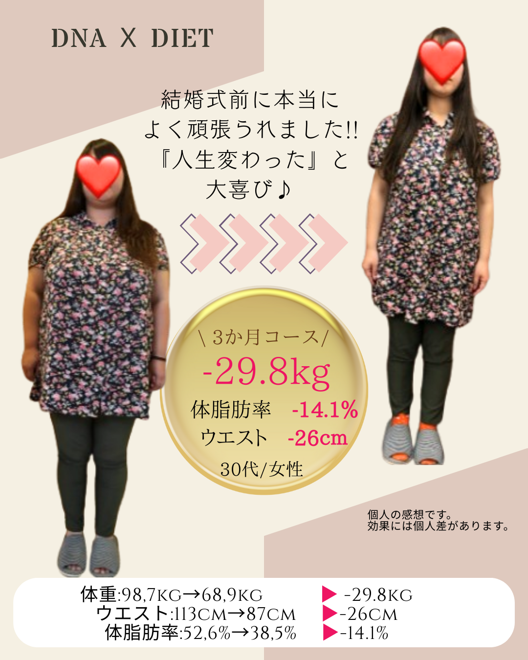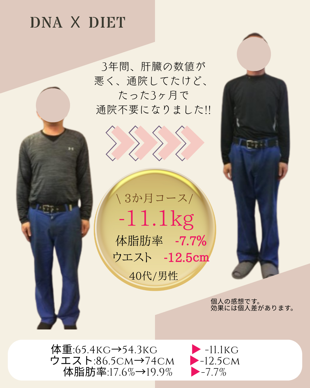 それは分子栄養学や遺伝子検査を使って、カラダの痩せるメカニズムに効果的かつ効率的にアプローチするからです。無理な食事制限もないのもストレスなくやり遂げられる秘訣です。